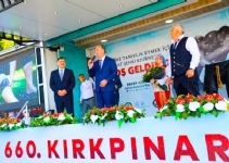 Tarihi Kırkpınar Yağlı Güreşleri ağası Seyfettin Selim, Edirne Belediye Başkanı Recep Gürkan ve beraberindekiler tarafından davul zurna ile kent girişinde karşılandı.