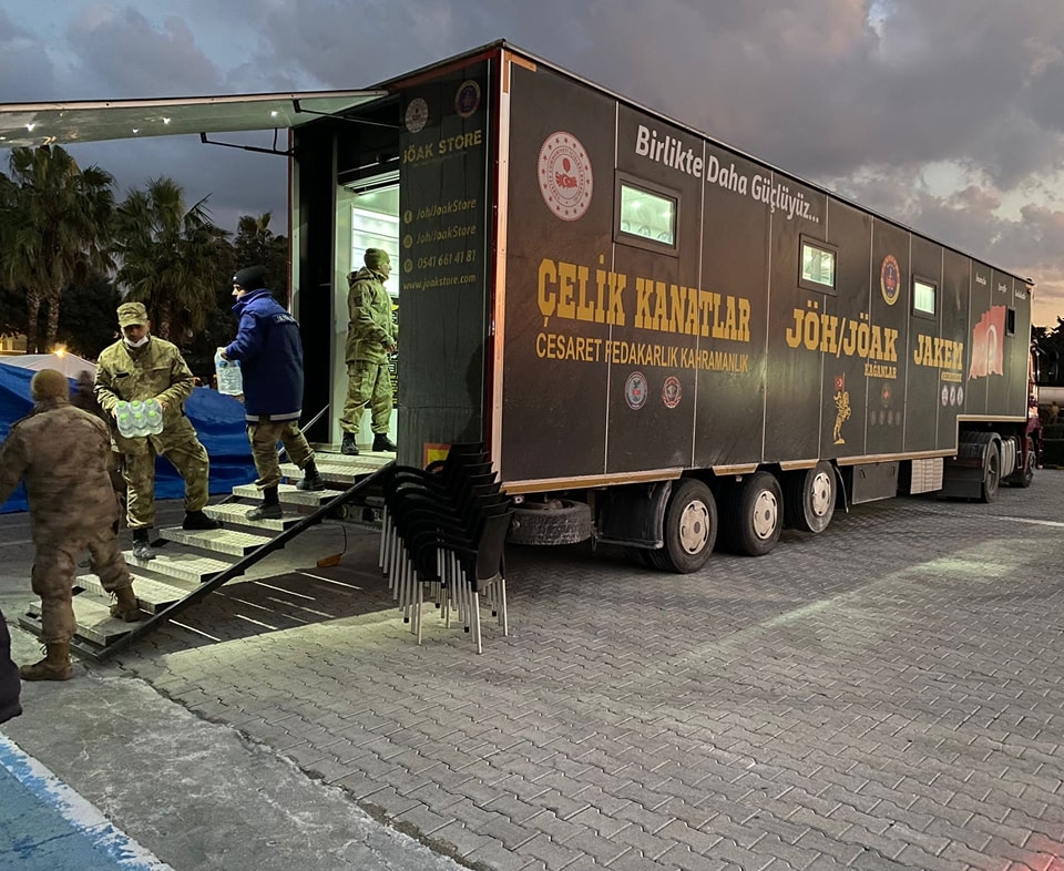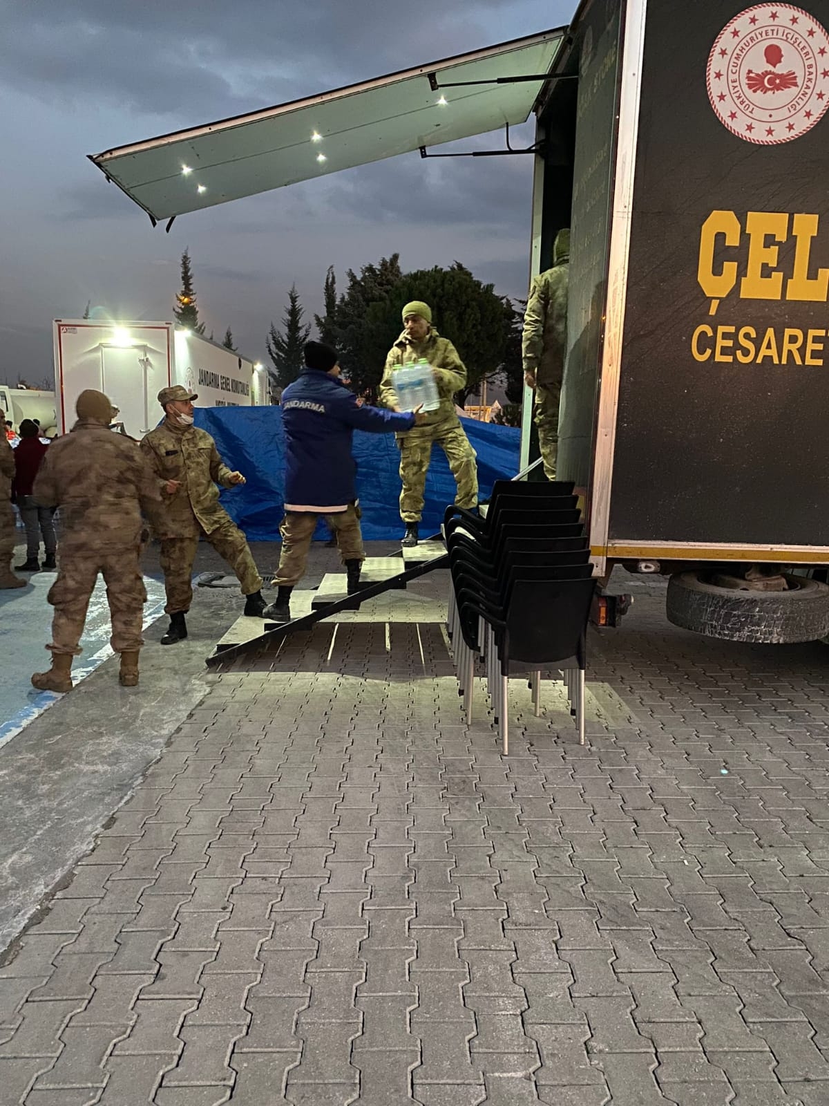 As Mobile Stage Systems; in the disaster area, we contribute with 2 of our Joak&Jhv mobile vehicles, providing mobile toilets, mobile kitchens, health aid materials, and humanitarian aid materials.