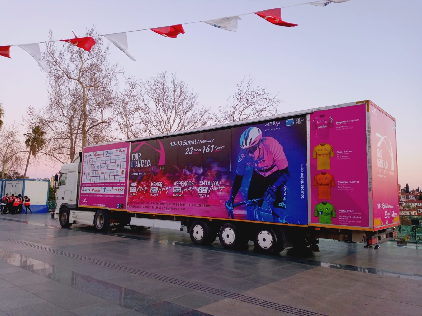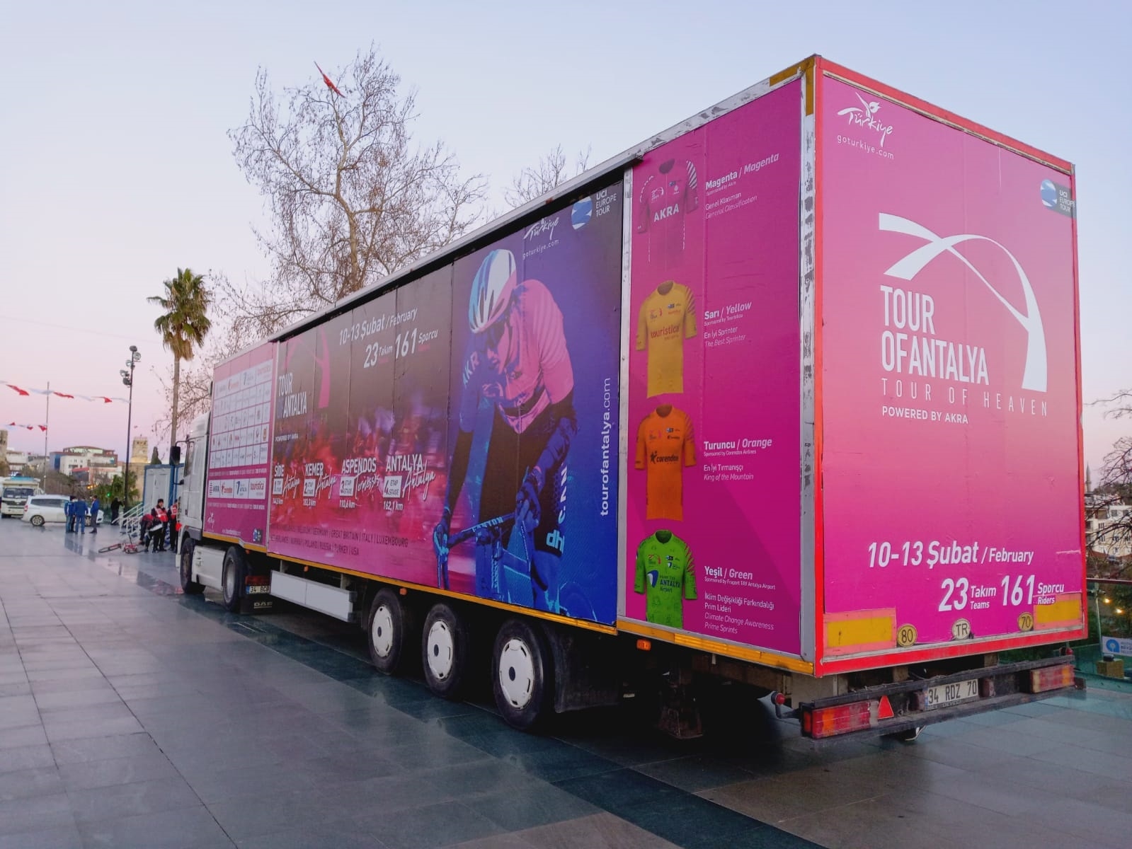 14 ülkeden 23 takım ve 161 sporcunun toplamda 600 kilometreden fazla mesafe kat edeceği organizasyon birçok ülkede canlı olarak yayımlanacak. Bisikletçiler 13 Şubat’a kadar Akdeniz’in güzelliklerinin keyfini çıkaracak. Sürdürdülebilir organizasyon yapısı, parkur kalitesi ile dünya bisikletinde yükselen bir marka olan Tour of Antalya 2022, bugün 14 ülkeden 23 takım ve 161 sporcunun katılımıyla start alıyor. Bu yıl dördüncüsü düzenlenecek olan ve bugünkü Side-Antalya etabı ile başlayacak olan organizasyonda bisikletçiler 13 Şubat’taki finişe kadar toplamda 600 kilometreden fazla mesafe kat edecek. Birçok önemli kanal canlı verecek Bu yıl 9 Pro-Kıta takımının katılacağı ve her yıl belirlediği temalarıyla milyonlarca kişiye ulaşan farkındalık yaratan Tour of Antalya’nın 2022 teması ise ‘İklim Değişikliği Farkındalığı’ olacak. Tour of Antalya’yı TRT Spor, D-Smart, Sports TV ve S Sport’un yanı sıra CBC Sport (Azerbaycan), Horizon (İtalya), Eclat (G.Kore) Varzih (Tacikistan), Q Sport (Kazakistan) Uzresport (Özbekistan) canlı yayımlayacak.