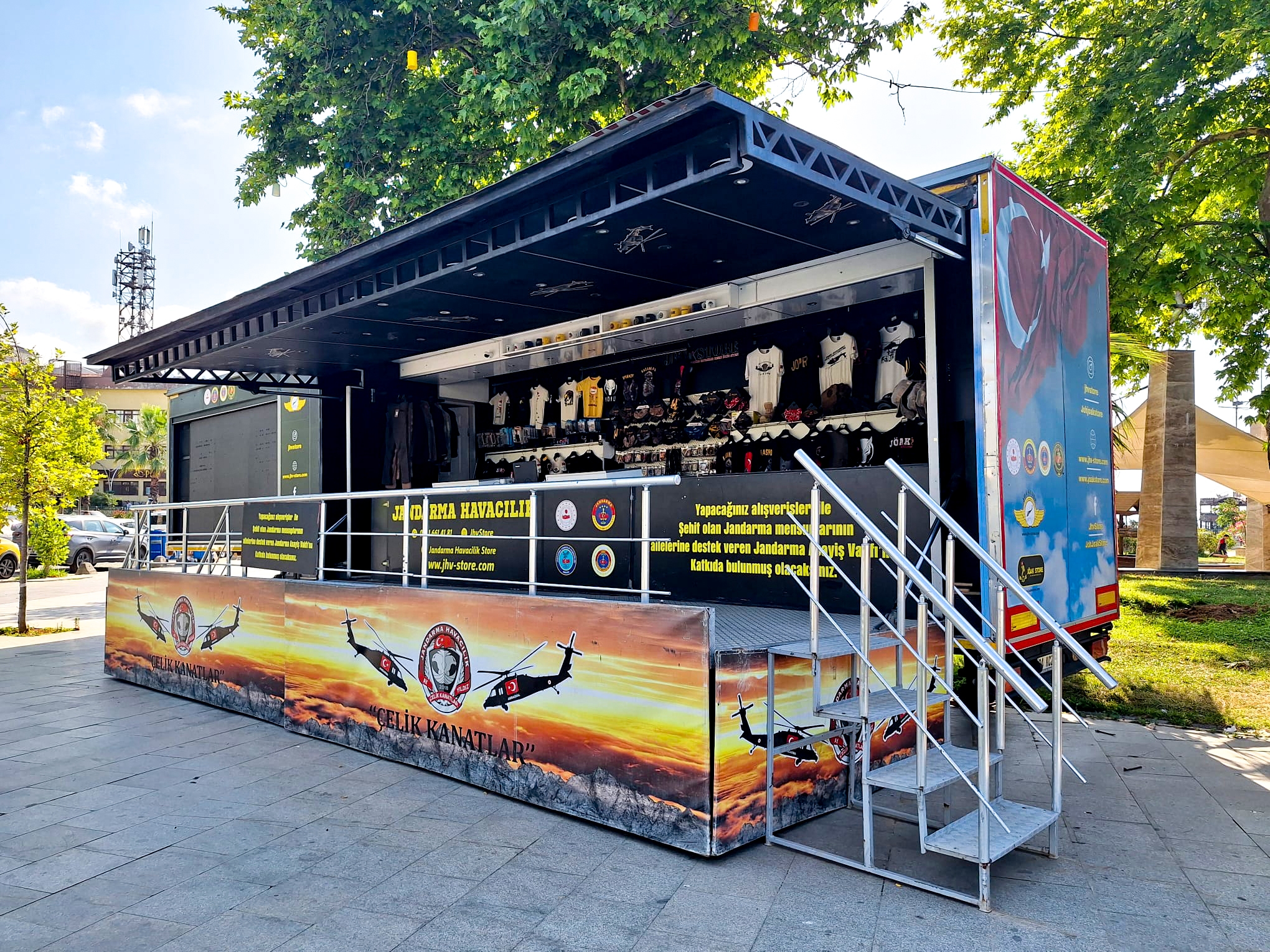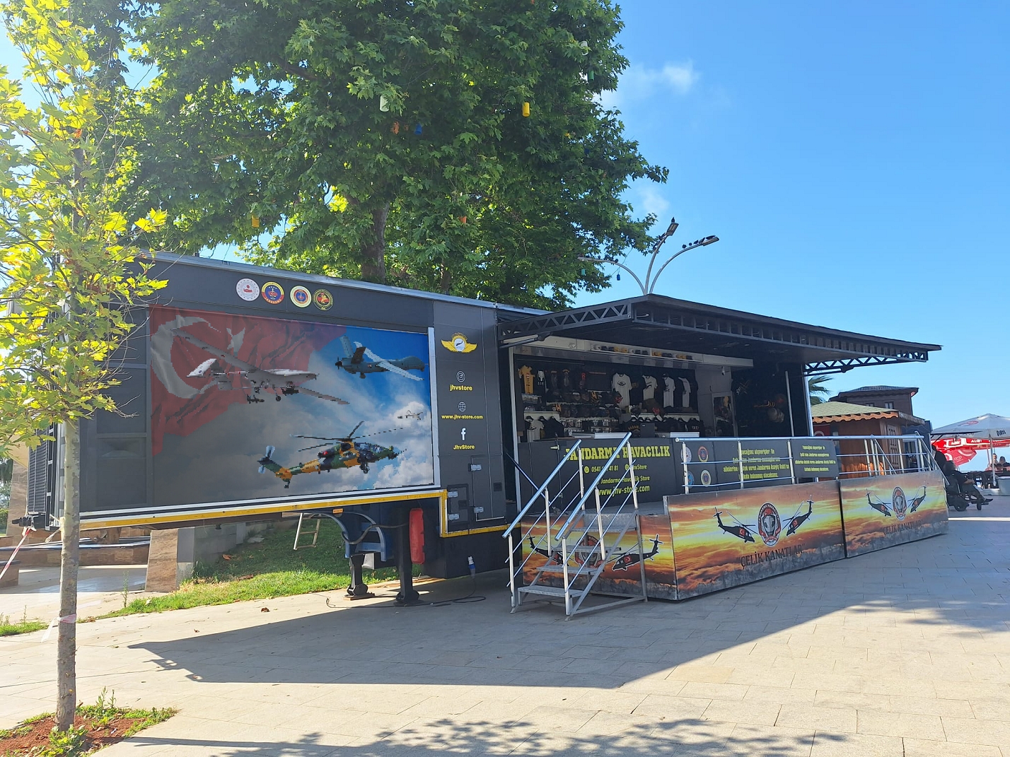 İçişleri Bakanlığı, Jandarma Genel Komutanlığı, Jandarma Havacılık Başkanlığı`nın etkinlik ve faaliyetlerine ilişkin tanıtım ve ürünlerinin satışı amacıyla özel olarak üretilen JHV-STORE TIR`ı, çalışmalarına Antalya`da devam etti.