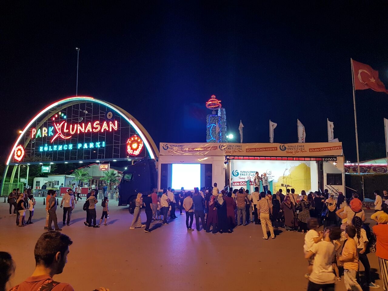Edirne’nin simgesi ve Mimar Sinan’ın ustalık eseri Selimiye Cami’nin önünde yapılan karşılamanın ve çeşitli etkinliklerin ardından Edirne Belediyesi’nin Yunus Emre Enstitüsü Türkçe Yaz Okulu öğrencileri onuruna Meriç Nehri kıyısında verdiği davete geçildi. Davet sonrasında Kültür Geceleri’nin yapılacağı, Eski Cami yakınındaki Camialtı mevkiine intikal edildi. Camialtı’nı dolduran Edirneliler, 15 ülkeden gelen 30 öğrenciyi coşkuyla karşıladı. Misafir öğrencilerin Edirnelileri tek tek selamlamasıyla devam eden programda, Yunus Emre Enstitüsünün ve Türkçe Yaz Okulu’nun tanıtım filmlerinin gösterimlerinin ardından Türkçe Yarışıyorum isimli etkinliğe geçildi.